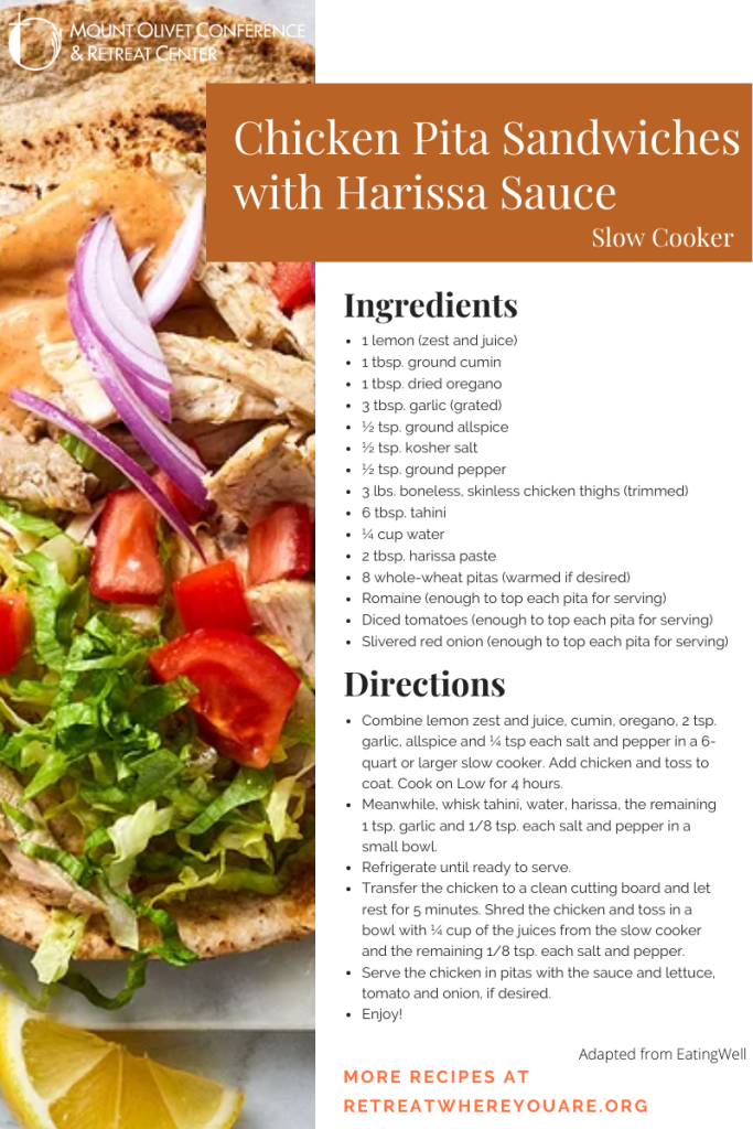 A delicious slow cooker recipe for chicken. Wrap in a pita, add veggies, and enjoy!
