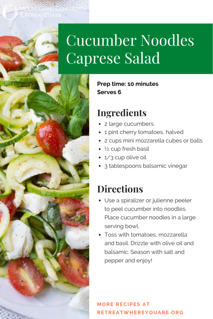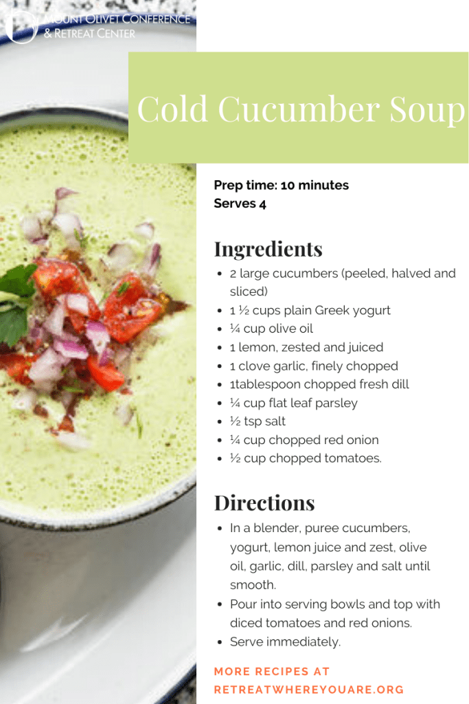 “We harvest about 30 pounds of cucumbers here at the retreat center every year! Cucumbers are a great summer vegetable because they are refreshing and hydrating. I love eating them on a hot summer day! I simply slice them and add to a salad or to a pitcher of water or eat them on their own with a few dashes of salt.