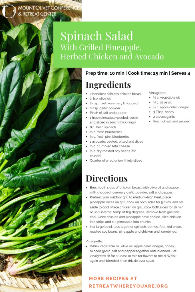 At Mount Olivet Conference & Retreat Center, our goal is to nurture our guests with delicious food, freshly prepared using the highest quality ingredients. And it is even better when those ingredients are grown feet away from the kitchen! Here we will share with you what we are growing in our onsite vegetable, fruit and herb garden and how you can incorporate that produce in your own cooking and baking at home.