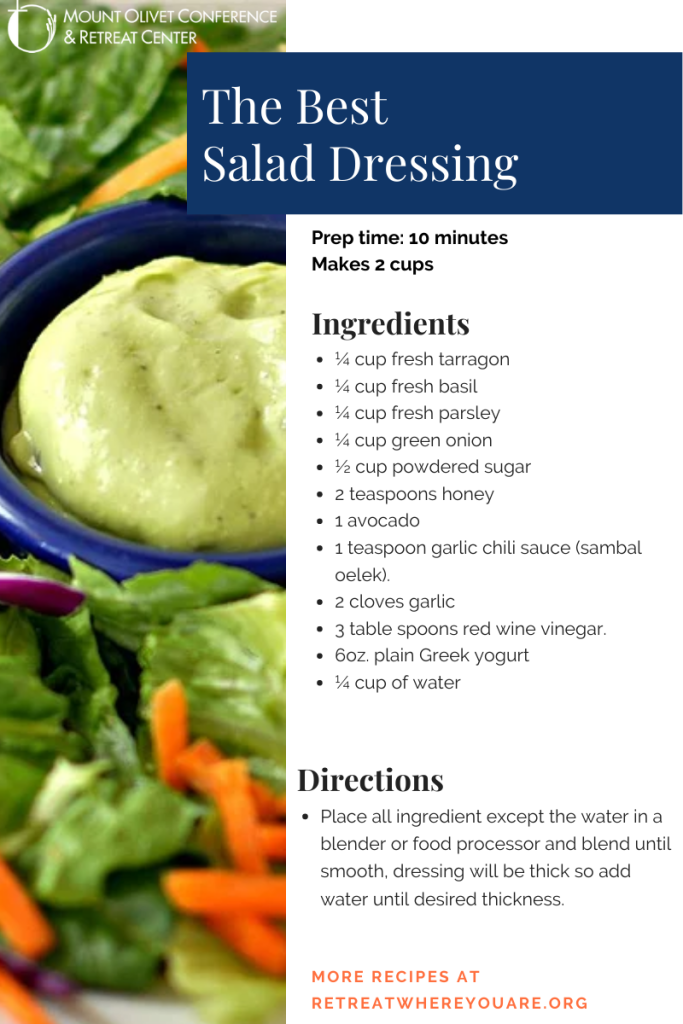 This recipe uses two herbs we grow onsite: parsley and basil. I call it The Best Salad Dressing because that is what it is…the best!”